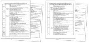 These pages present the entire course outline at a glance, providing week or unit numbers, categories, and event titles with their corresponding Gospel passages. Choose the thirty-six week or the nine unit version. |